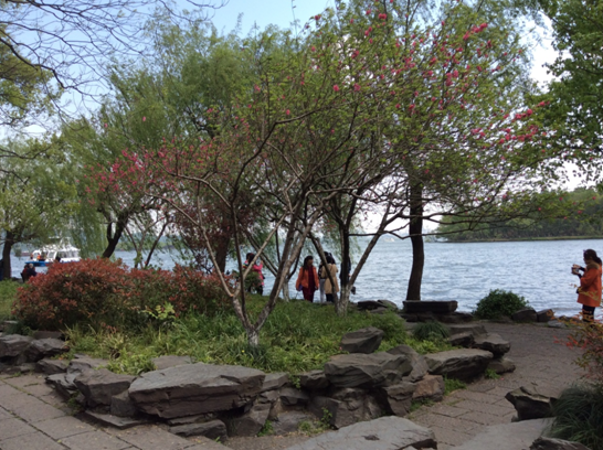 上午十點,我們乘船游西湖,泛舟風(fēng)韻萬千“淡妝濃抹總相宜”的西子湖,遠觀三潭印月、阮墩環(huán)碧、湖心亭、孤山煙雨,漫步桃紅柳綠的蘇堤,品味蘇東坡“間株楊柳間株桃”之詩境。