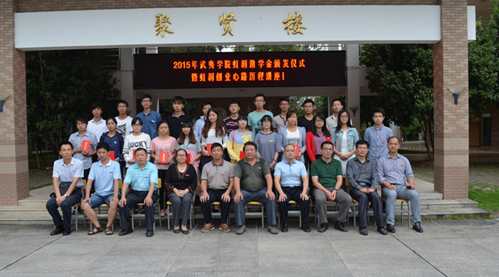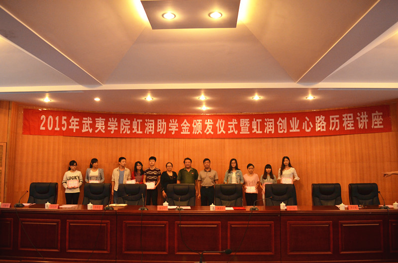 姚進(jìn)生、林善平等與會(huì)領(lǐng)導(dǎo)為獲得虹潤助學(xué)金的同學(xué)頒發(fā)了證書。林善平用自己的創(chuàng)業(yè)歷程告訴同學(xué)們要尊重自我,在暫時(shí)的逆境中砥礪品格,磨練意志,用自己的努力不斷增長知識(shí)和才干,在以后的人生歷程中選擇更輝煌的道路。