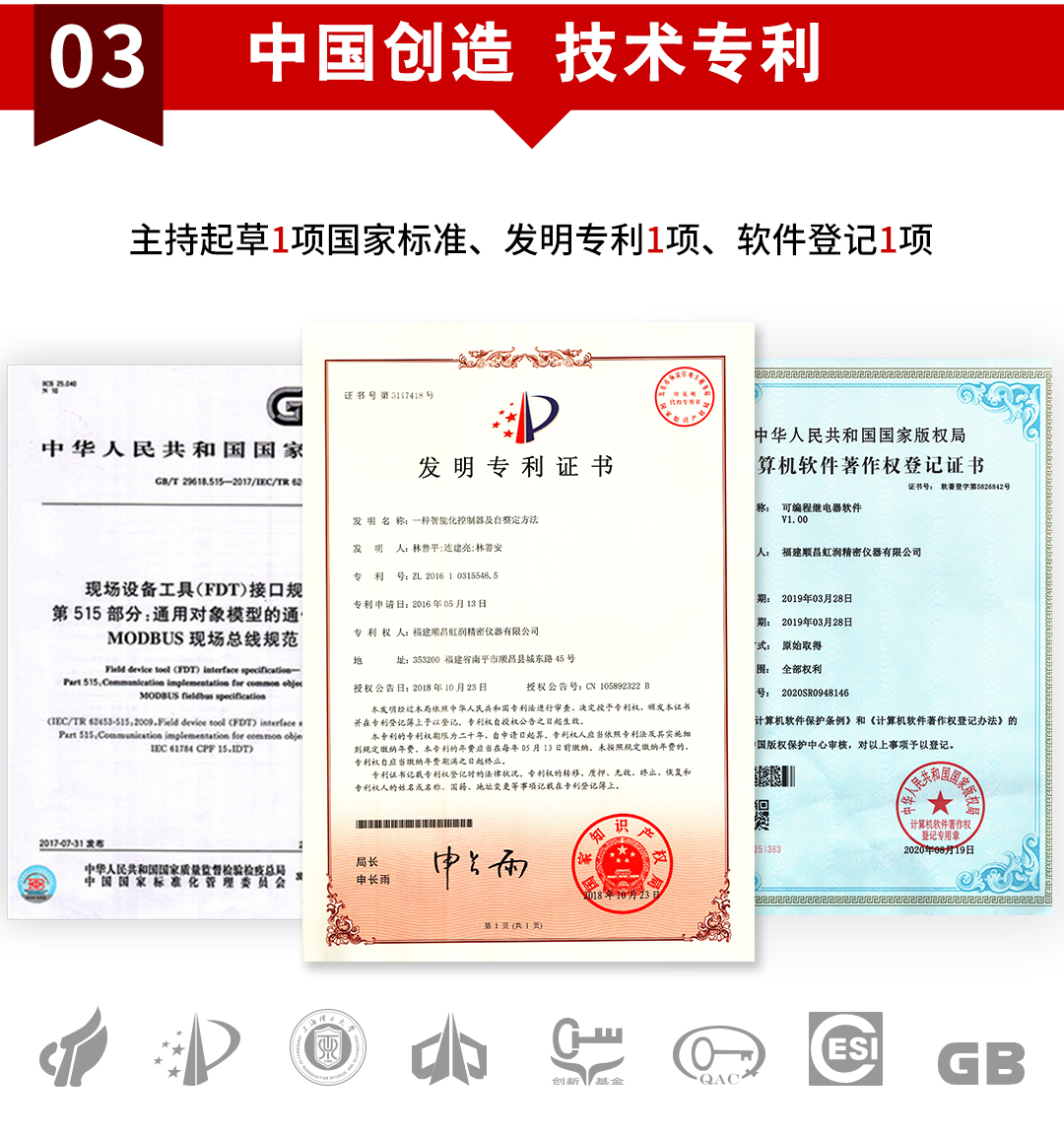 虹潤(rùn)公司是專業(yè)生產(chǎn)PLC控制器的國(guó)家專精特新“小巨人”企業(yè)。生產(chǎn)的簡(jiǎn)易PLC控制器,具有全隔離設(shè)計(jì),中文編程,專業(yè)邏輯控制與時(shí)間,梯形圖編程方式,遠(yuǎn)程RS485通訊監(jiān)測(cè)等特點(diǎn)。產(chǎn)品獲得智能化控制器、多通道可編程繼電器等2項(xiàng)國(guó)家發(fā)明專利;主持起草流程工業(yè)中電氣/儀表和控制系統(tǒng)的試車(chē)國(guó)家標(biāo)準(zhǔn),通信系統(tǒng)多通道數(shù)據(jù)采集控制終端規(guī)范軍用標(biāo)準(zhǔn),以及現(xiàn)場(chǎng)設(shè)備集成等5項(xiàng)智能制造國(guó)家標(biāo)準(zhǔn),參與國(guó)際5G標(biāo)準(zhǔn)制定,取得可編程繼電器等2項(xiàng)相關(guān)軟件著作權(quán)。產(chǎn)品廣泛應(yīng)用于工業(yè)自動(dòng)化設(shè)備、電氣自動(dòng)化系統(tǒng)、農(nóng)業(yè)灌溉、包裝機(jī)械、印刷機(jī)械、樓宇自控等諸多領(lǐng)域。