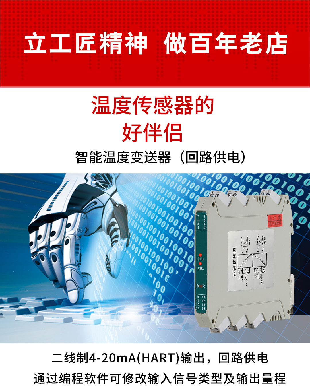 虹潤公司是專業(yè)生產(chǎn)溫度變送器的國家專精特新“小巨人”企業(yè)。生產(chǎn)的HART智能溫度變送器,具有適配各類溫度傳感器,通過編程線修改輸入信號(hào)類型及量程,二線制4-20Ma(HART)輸出,回路供電等特點(diǎn)。該產(chǎn)品不僅通過HART基金會(huì)認(rèn)證、德國萊茵 CE 認(rèn)證與 SIL 功能安全認(rèn)證,還獲得具備減震抗干擾能力的溫度變送器、信號(hào)隔離器、一種二端子模塊、無源信號(hào)隔離器等4項(xiàng)國家發(fā)明專利,主持起草物聯(lián)網(wǎng)智能溫度儀表、現(xiàn)場(chǎng)設(shè)備工具(FDT)接口規(guī)范、工業(yè)過程測(cè)量和控制系統(tǒng)用溫度變送器等3項(xiàng)國家標(biāo)準(zhǔn),以及通信系統(tǒng)多通道數(shù)據(jù)采集控制終端規(guī)范軍用標(biāo)準(zhǔn),參與國際5G標(biāo)準(zhǔn)制定,取得HART溫度變送器、智能溫度變送器等5項(xiàng)相關(guān)軟件著作權(quán)。產(chǎn)品廣泛應(yīng)用于石油、化工、電力、冶金、制藥、食品、水處理等各種工業(yè)領(lǐng)域。