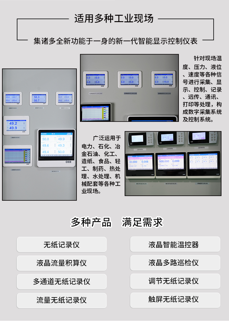 虹潤(rùn)公司是專(zhuān)業(yè)生產(chǎn)無(wú)紙記錄儀的國(guó)家專(zhuān)精特新“小巨人”企業(yè)。生產(chǎn)的觸摸屏調(diào)節(jié)無(wú)紙記錄儀,具有觸摸大屏顯示,真正人工智能算式,無(wú)需人工整定參數(shù),控制精度達(dá)士0.1°C,數(shù)據(jù)記錄與轉(zhuǎn)存, RS485/以太網(wǎng)通訊,5/7/9英寸可選等特點(diǎn)。產(chǎn)品獲得智能化控制器、人工智能調(diào)節(jié)器及調(diào)節(jié)方法、模糊PID控制儀及控制方法、平板無(wú)紙記錄儀、巡回檢測(cè)顯示方法及裝置等5項(xiàng)國(guó)家發(fā)明專(zhuān)利,主持起草物聯(lián)網(wǎng)智能記錄儀表通用技術(shù)條件、物聯(lián)網(wǎng)智能溫度儀表通用技術(shù)條件、工業(yè)過(guò)程測(cè)量和控制系統(tǒng)用智能調(diào)節(jié)器等3項(xiàng)國(guó)家標(biāo)準(zhǔn),通信系統(tǒng)多通道數(shù)據(jù)采集控制終端規(guī)范軍用標(biāo)準(zhǔn),以及空間數(shù)據(jù)與信息數(shù)據(jù)傳輸系統(tǒng)等2項(xiàng)航天標(biāo)準(zhǔn),參與國(guó)際5G標(biāo)準(zhǔn)制定,取得觸摸屏彩色調(diào)節(jié)無(wú)紙記錄儀等3項(xiàng)相關(guān)軟件著作權(quán)。產(chǎn)品廣泛應(yīng)用于電力、石化、冶金、化工、食品、制藥、熱處理、水處理、機(jī)械配套等諸多領(lǐng)域。