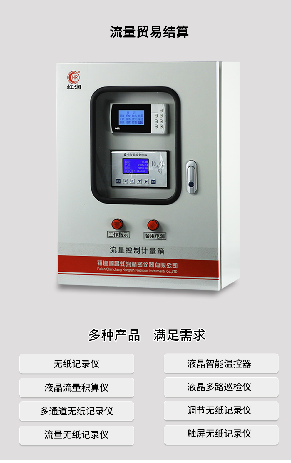 虹潤(rùn)公司是專(zhuān)業(yè)生產(chǎn)流量積算儀的國(guó)家專(zhuān)精特新“小巨人”企業(yè)。生產(chǎn)的液晶熱(冷)量積算記錄儀,具有適配各類(lèi)測(cè)量介質(zhì)及裝置,通道之間相互隔離,帶貿(mào)易結(jié)算功能,RS485/RS232通訊等特點(diǎn)。產(chǎn)品獲得一種流量積算儀、一種平板式無(wú)紙記錄儀等2項(xiàng)國(guó)家發(fā)明專(zhuān)利,主持起草物聯(lián)網(wǎng)智能記錄儀表通用技術(shù)條件、封閉管道中流體流量的測(cè)量、基于HART協(xié)議的電磁流量計(jì)等3項(xiàng)國(guó)家標(biāo)準(zhǔn),以及通信系統(tǒng)多通道數(shù)據(jù)采集控制終端規(guī)范、艦船用電磁流量計(jì)等2項(xiàng)軍用標(biāo)準(zhǔn),以及空間數(shù)據(jù)與信息數(shù)據(jù)傳輸系統(tǒng)等2項(xiàng)航天標(biāo)準(zhǔn)。參與國(guó)際5G標(biāo)準(zhǔn)制定,取得液晶流量熱能積算控制儀等4項(xiàng)相關(guān)軟件著作權(quán)。產(chǎn)品廣泛應(yīng)用于石化、冶金、制藥、環(huán)保能源、農(nóng)業(yè)灌溉、污水處理系統(tǒng)等諸多領(lǐng)域。
