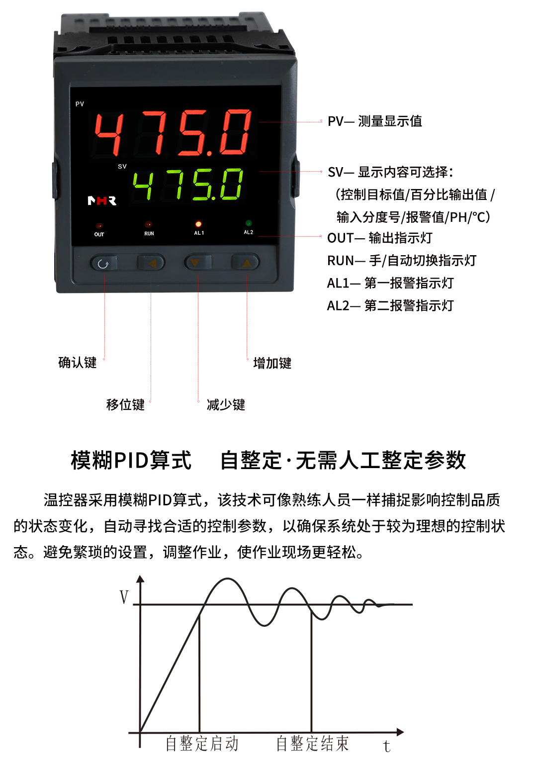 虹潤公司是專業(yè)生產(chǎn)溫控器的國家專精特新“小巨人”企業(yè)。生產(chǎn)的傻瓜式智能溫控器,具有傻瓜式操作,真正人工智能算式,無需人工整定參數(shù),控制精度可達(dá)±0.1°C,高抗干擾等特點(diǎn)。產(chǎn)品獲得模糊PID控制儀及控制方法、人工智能調(diào)節(jié)器、智能化控制器、移相觸發(fā)控制器、閥門自動手動無擾動操作控制方法及裝置等5項(xiàng)國家發(fā)明專利,主持起草工業(yè)過程控制系統(tǒng)用模擬輸入兩位或多位輸出儀表、物聯(lián)網(wǎng)智能溫度儀表通用技術(shù)條件、工業(yè)過程測量和控制系統(tǒng)用智能調(diào)節(jié)器等3項(xiàng)國家標(biāo)準(zhǔn),以及通信系統(tǒng)多通道數(shù)據(jù)采集控制終端規(guī)范軍用標(biāo)準(zhǔn),參與國際5G標(biāo)準(zhǔn)制定,取得傻瓜式模糊PID調(diào)節(jié)儀等3項(xiàng)相關(guān)軟件著作權(quán)。產(chǎn)品廣泛應(yīng)用于電力、石化,冶金、制藥、食品等幾乎所有工業(yè)現(xiàn)場,實(shí)現(xiàn)精準(zhǔn)控溫,保障生產(chǎn)安全與質(zhì)量。